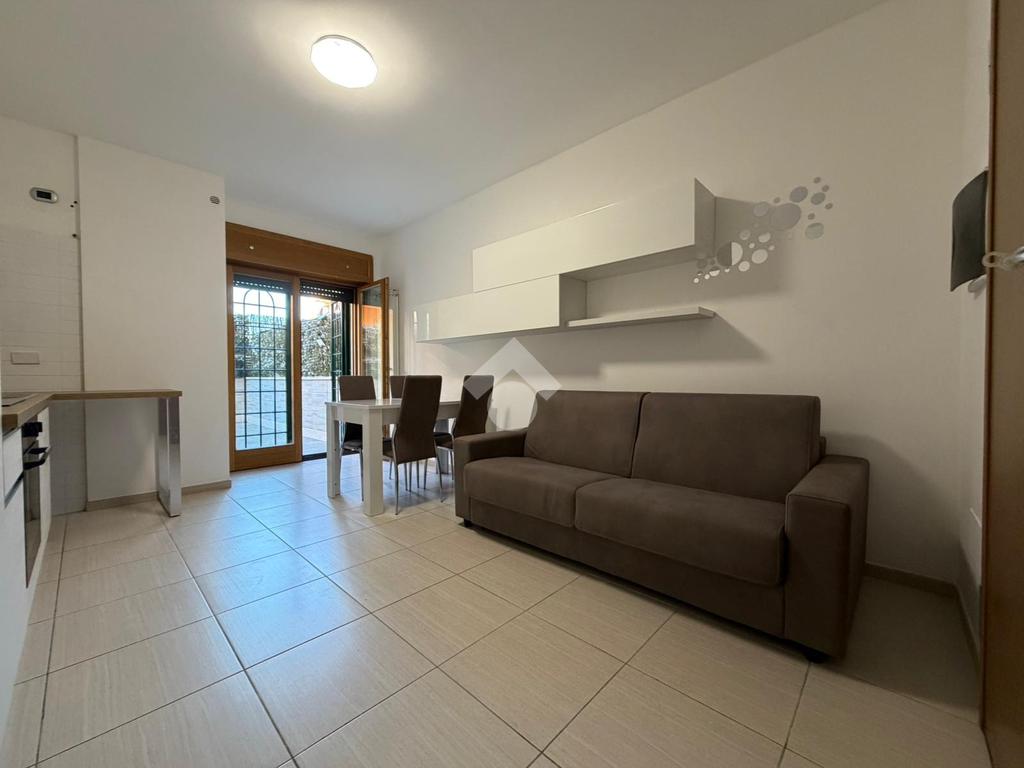 L’appartamento si presenta in ottime condizioni, caratterizzato da ambienti luminosi e ben distribuiti. Internamente si compone di un soggiorno con angolo cottura, con accesso diretto ad un'ampia corte esterna mattonata, perfetto per godere di uno spazio esterno vivibile.