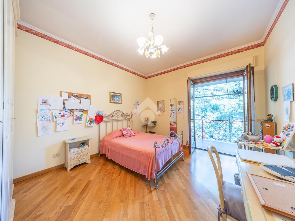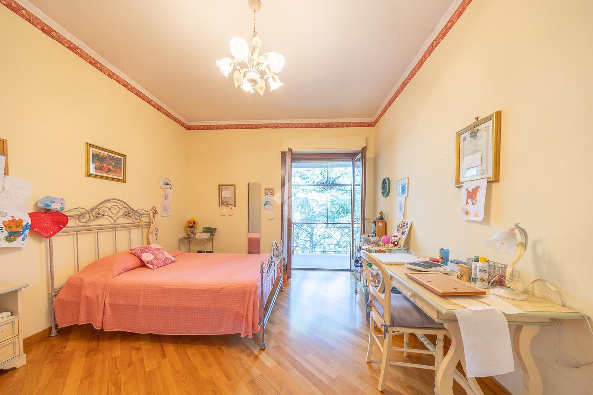 La zona notte è ben organizzata e comprende due camere matrimoniali, di cui una con balcone privato, oltre a due bagni e un pratico ripostiglio, anche se l'ampia metratura permetterebbe facilmente di realizzare una terza camera da letto.