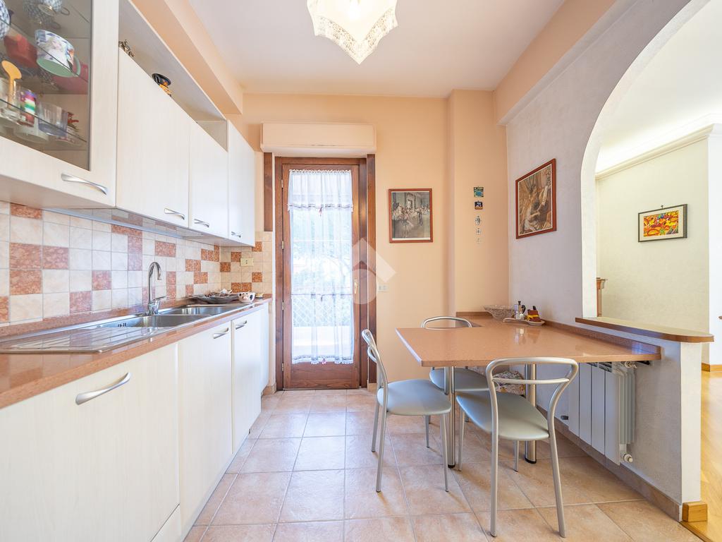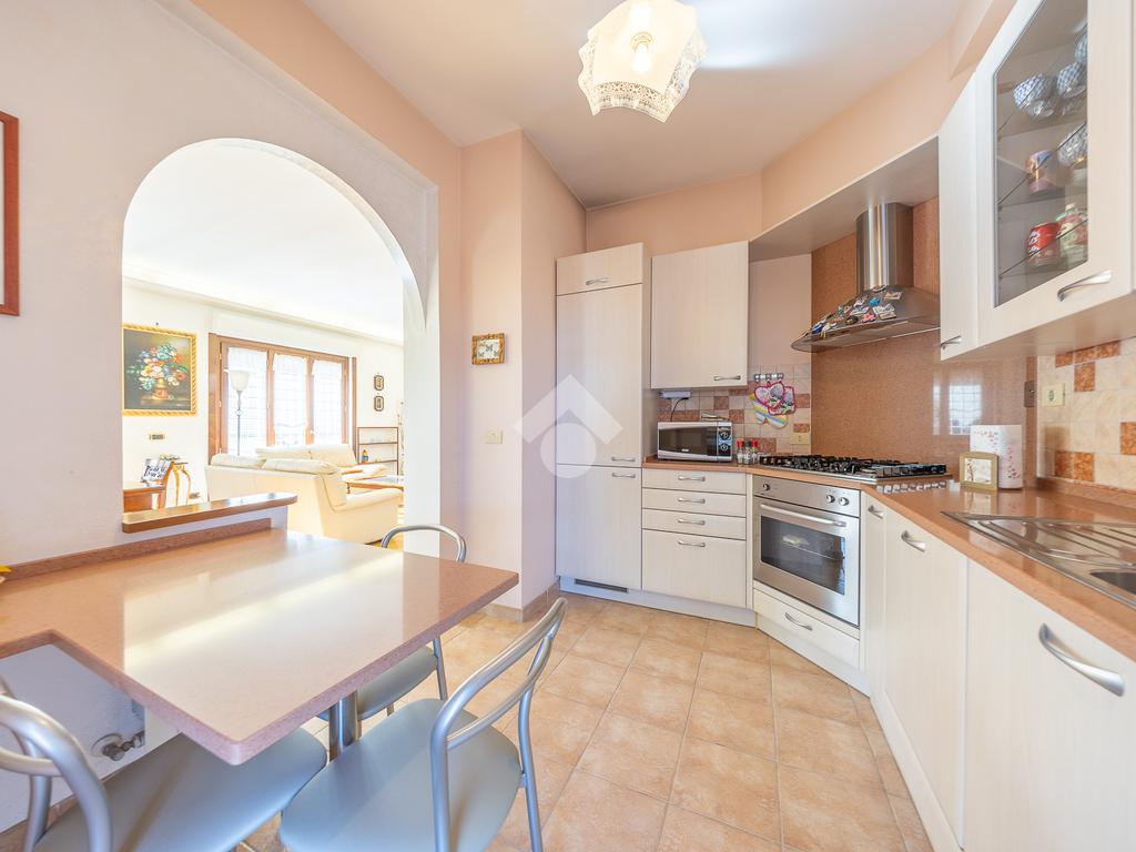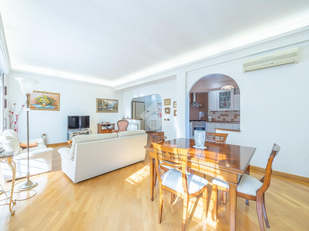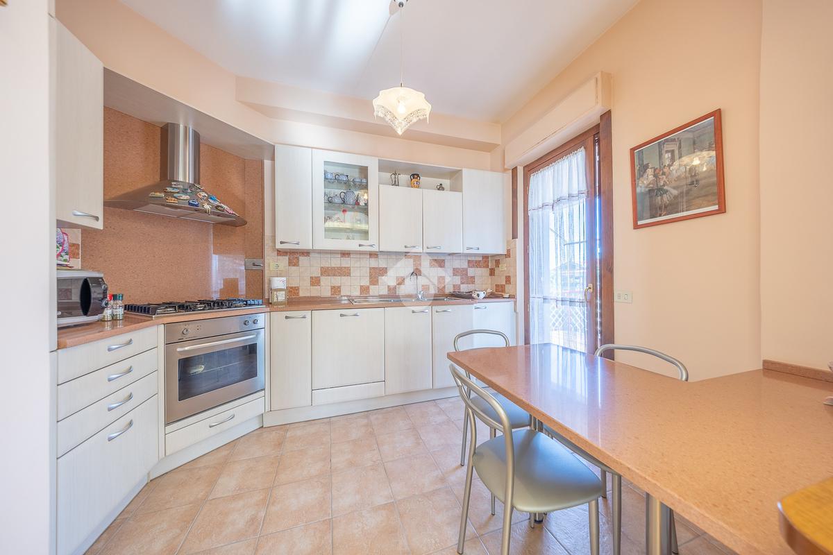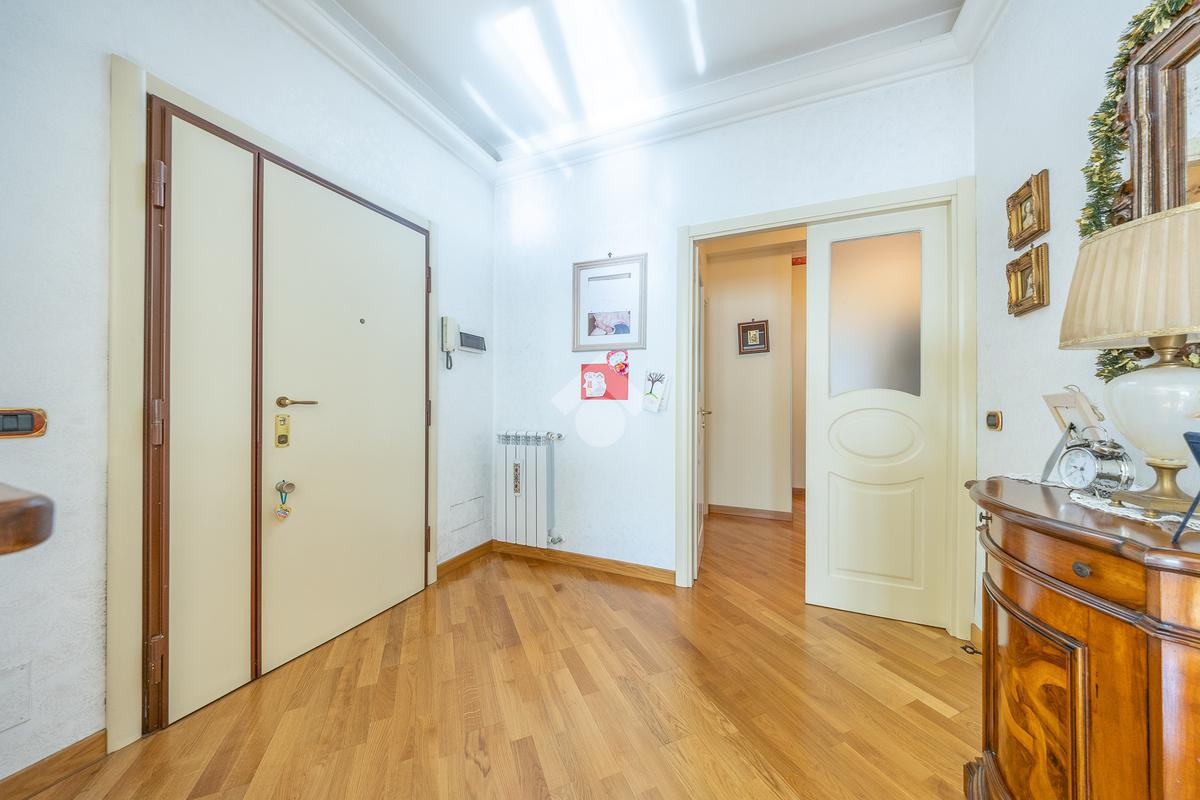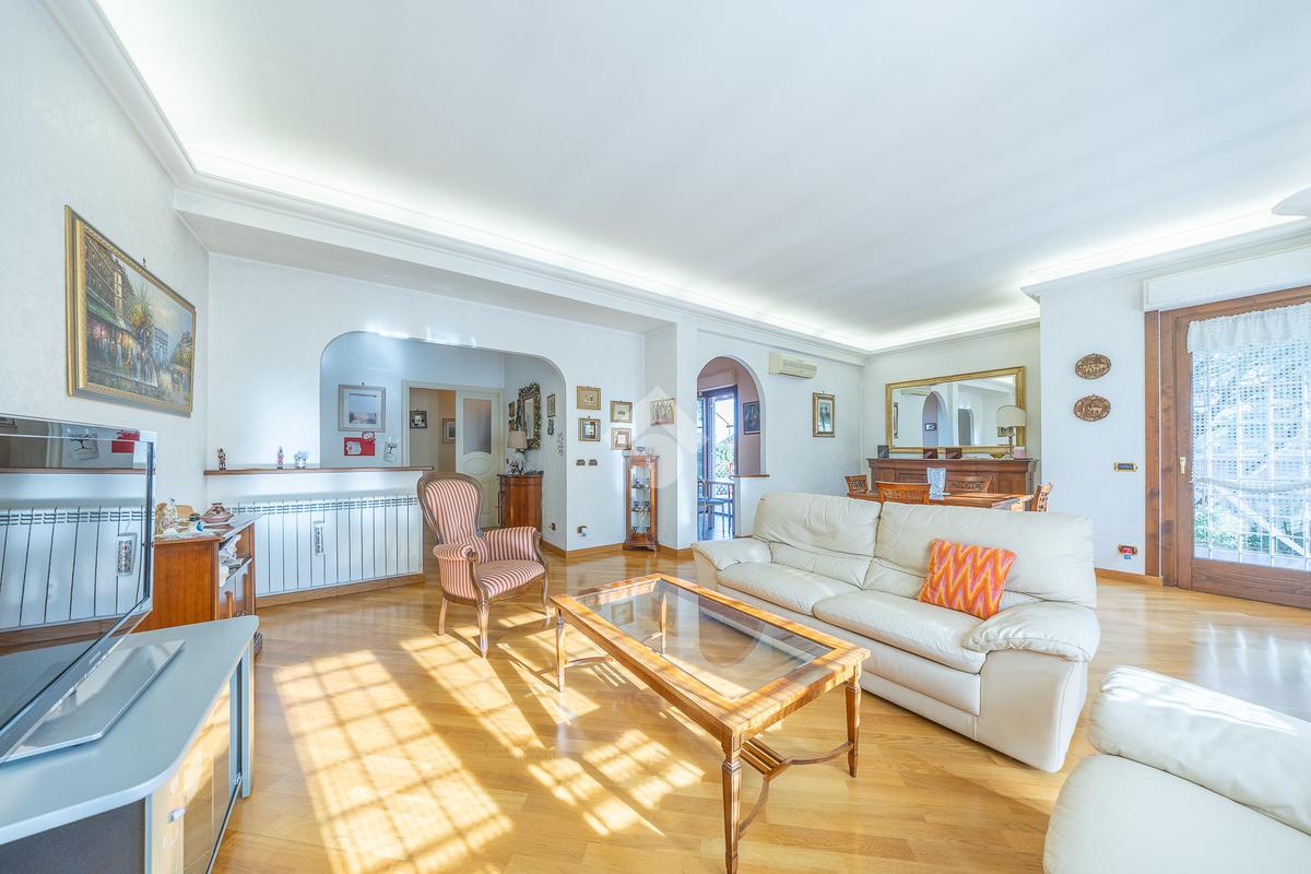 L'ingresso si apre su un comodo disimpegno che accompagna all'enorme soggiorno, luminosissimo grazie alle tre porte finestre che filtrano luce naturale per tutto l'arco della giornata. La cucina, separata ma a vista, rimane funzionale e perfettamente integrata nella zona living. Da entrambi gli ambienti si accede al magnifico terrazzo perimetrale, un vero e proprio prolungamento della casa, ideale per pranzi, cene all'aperto e momenti di relax con vista panoramica e affaccio libero.