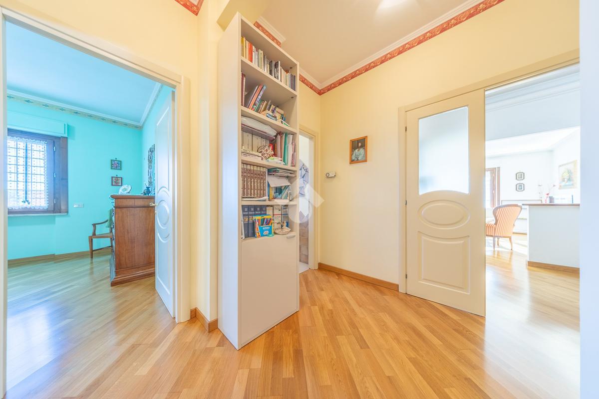 La proprietà è stata rifinita con pavimenti in pregiato parquet color rovere Listone Giordano, porte interne su misura, infissi di ultima generazione, serrande elettriche e porta blindata. Per garantire la massima sicurezza, tutte le aperture sono dotate di inferriate su msiura.