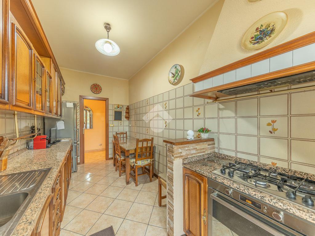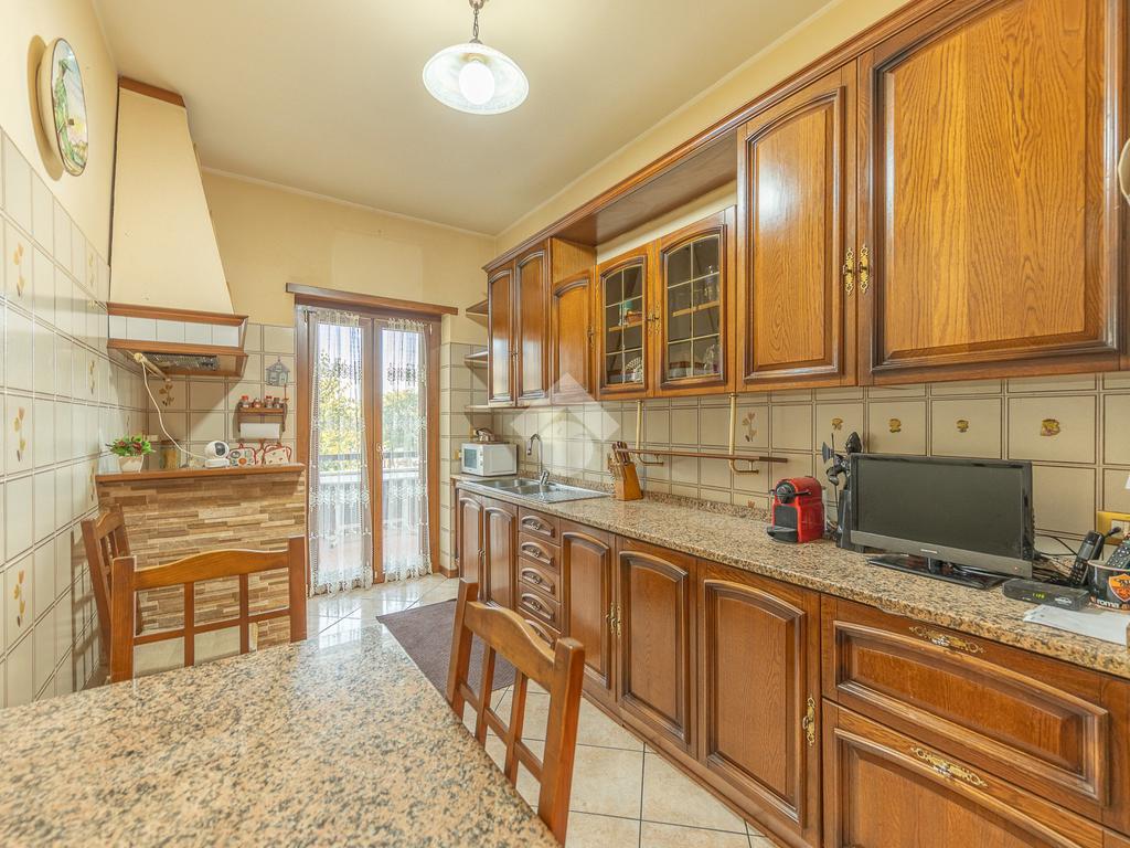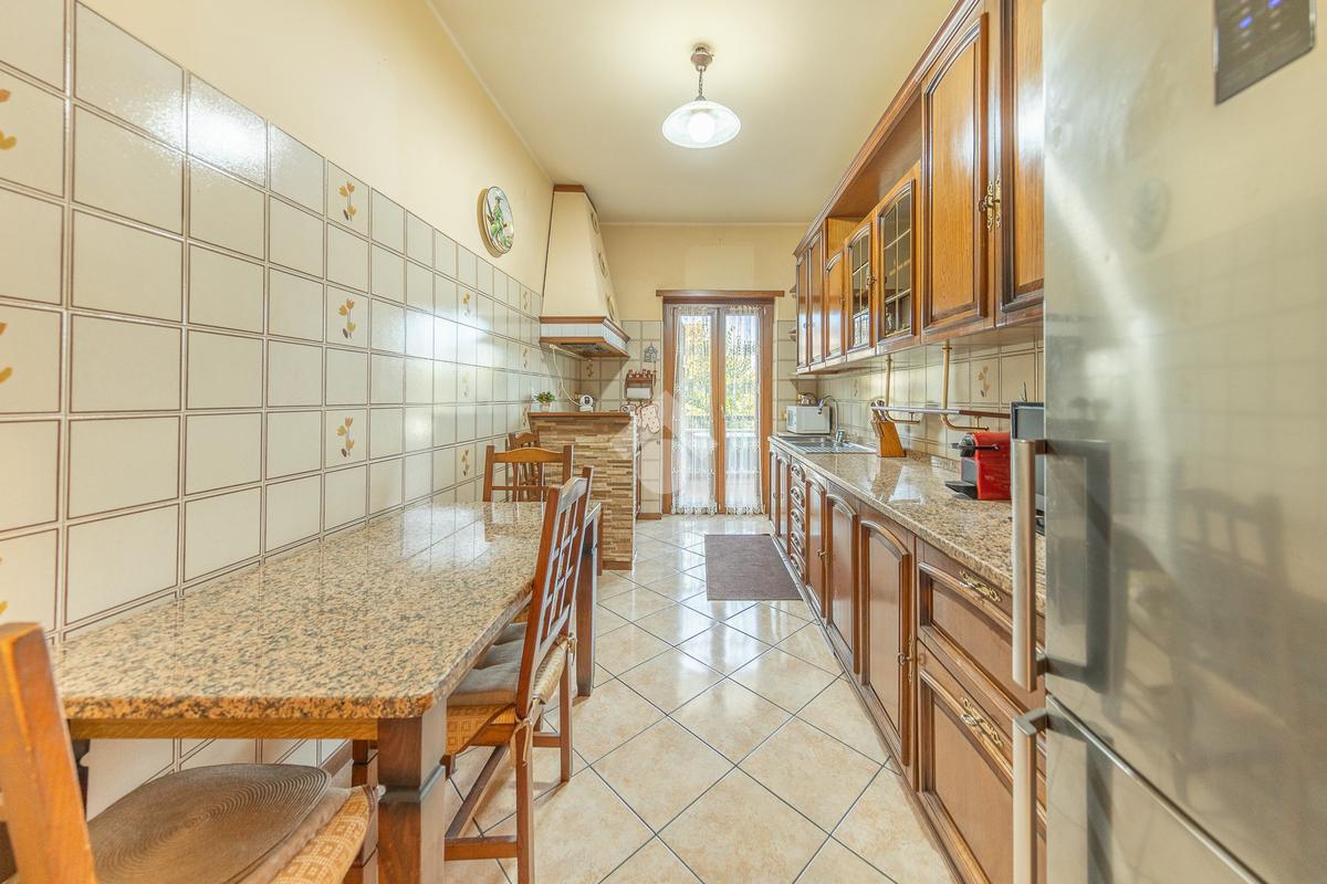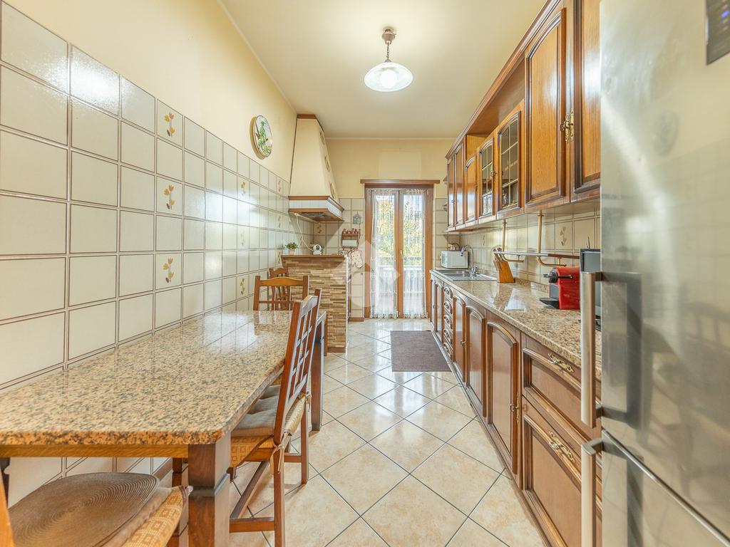 La zona giorno è composta da un ampio e luminoso salone con accesso diretto al terrazzo perimetrale abitabile, perfetto per pranzi all'aperto e momenti di relax. La cucina separata e abitabile gode anch'essa di accesso allo sfogo esterno.