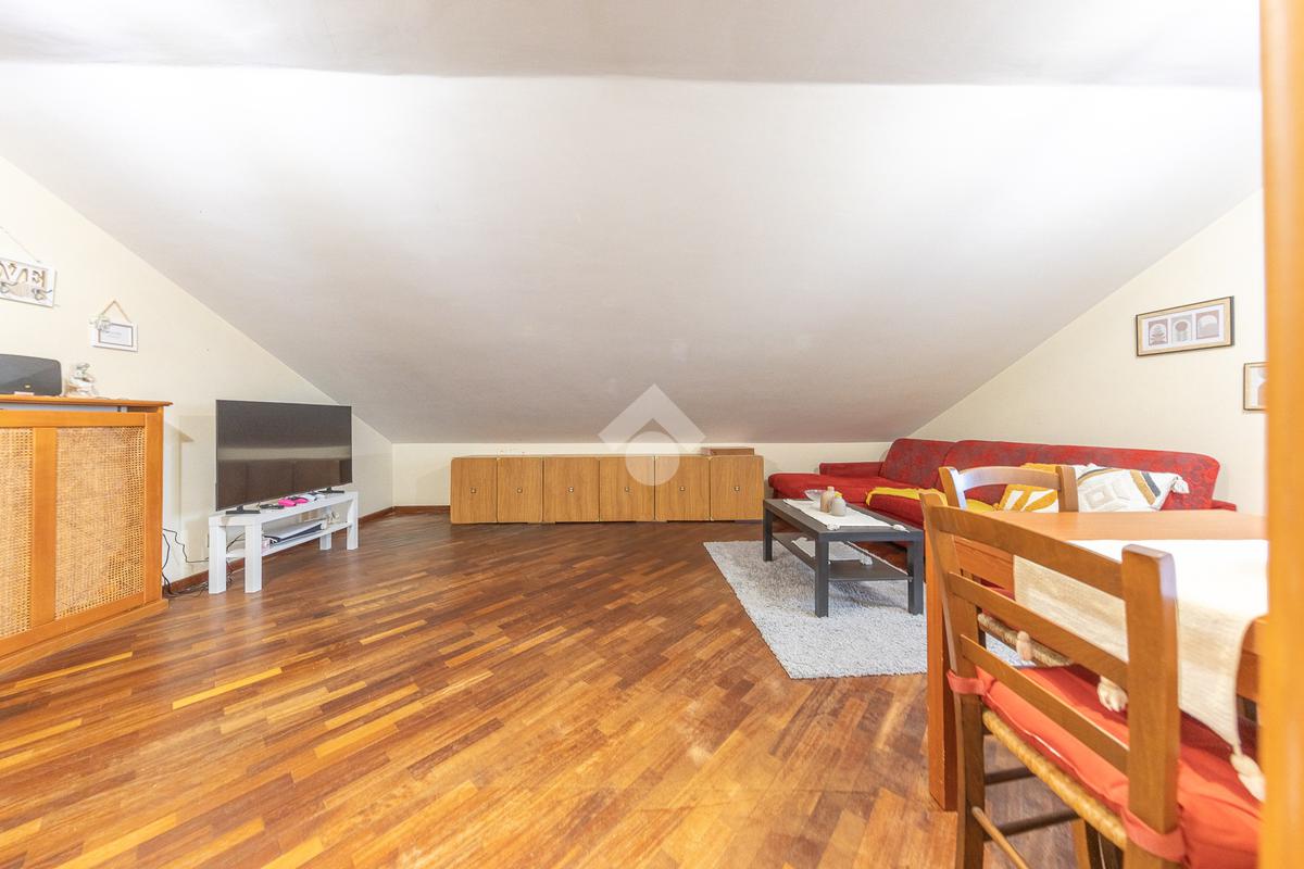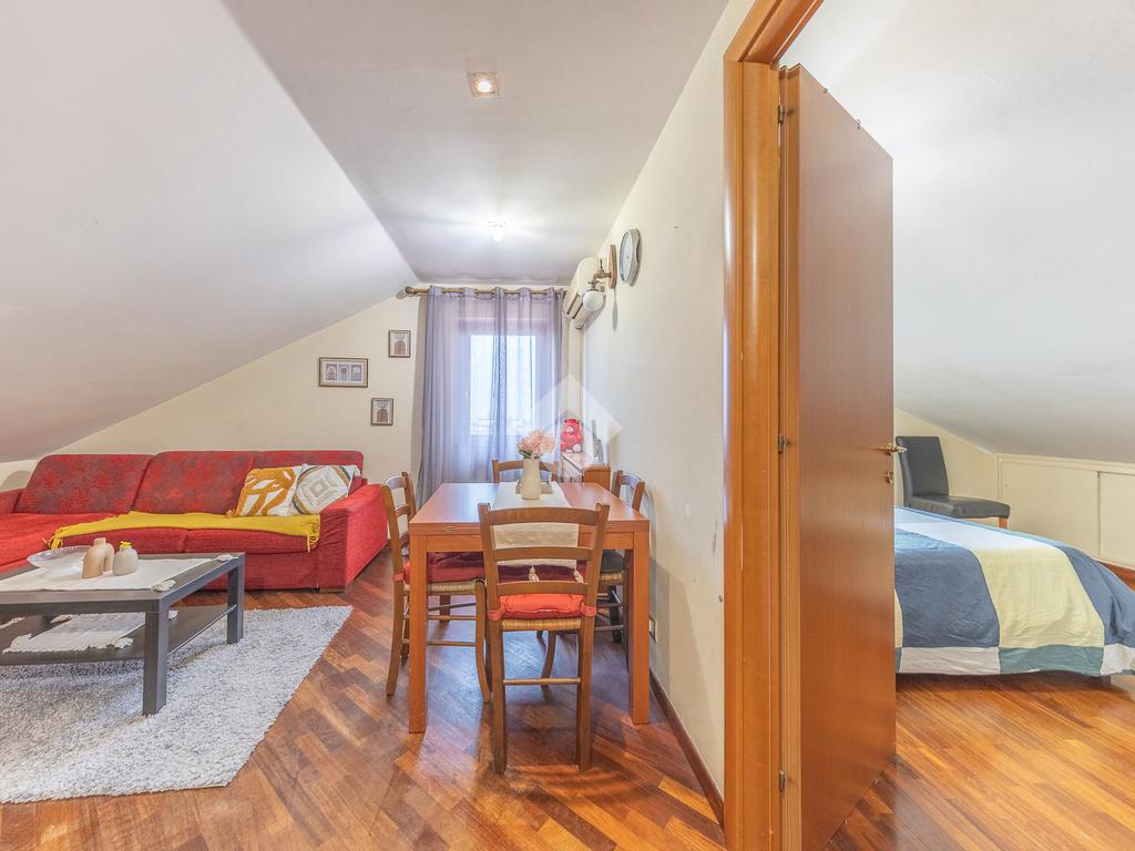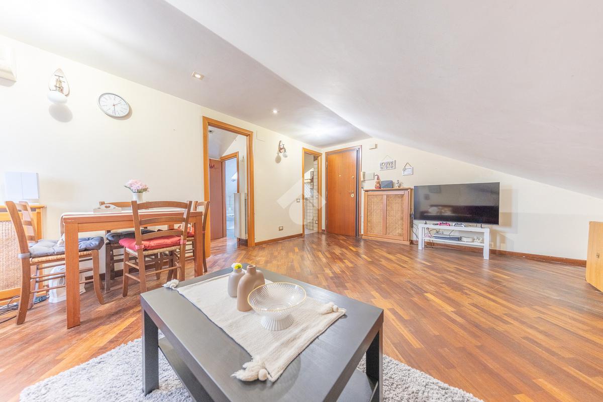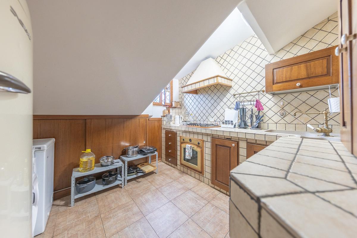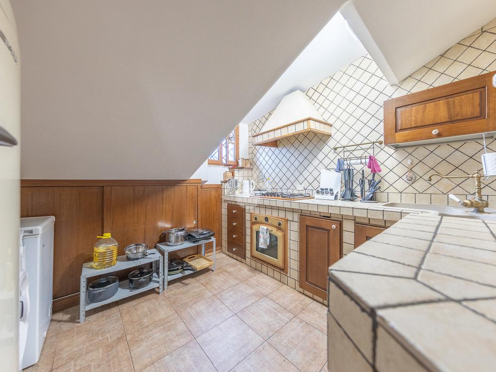L’immobile si distingue per ambienti luminosi e ben distribuiti, caratterizzati dal fascino tipico delle mansarde, con spazi accoglienti e un’atmosfera calda e riservata. L’ingresso conduce alla zona giorno, dove troviamo un soggiorno funzionale e armonioso, ideale per momenti di relax o convivialità, con cucina ben organizzata e perfettamente integrata all’ambiente.