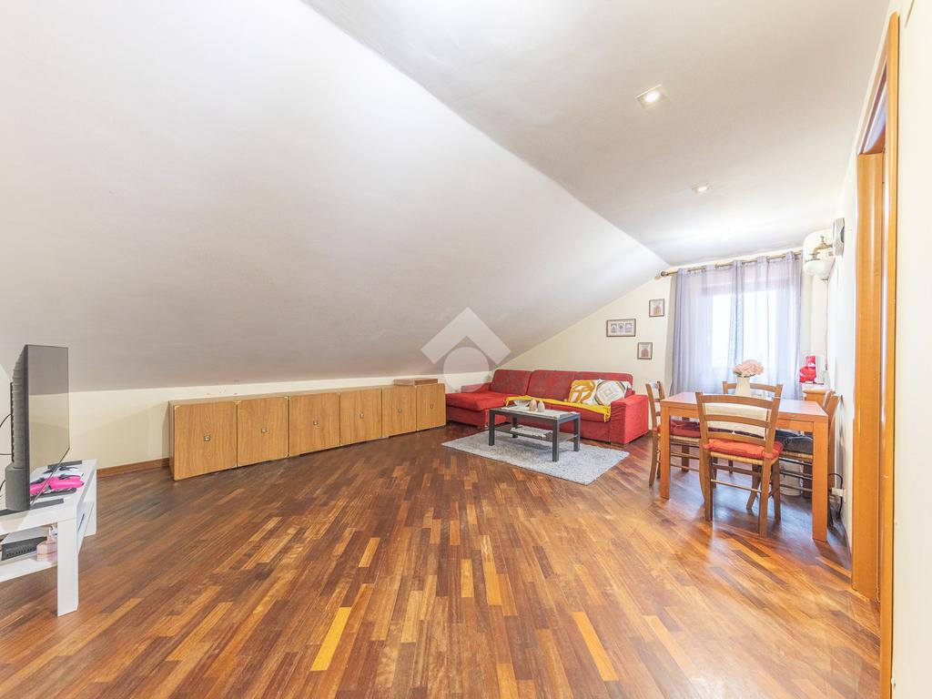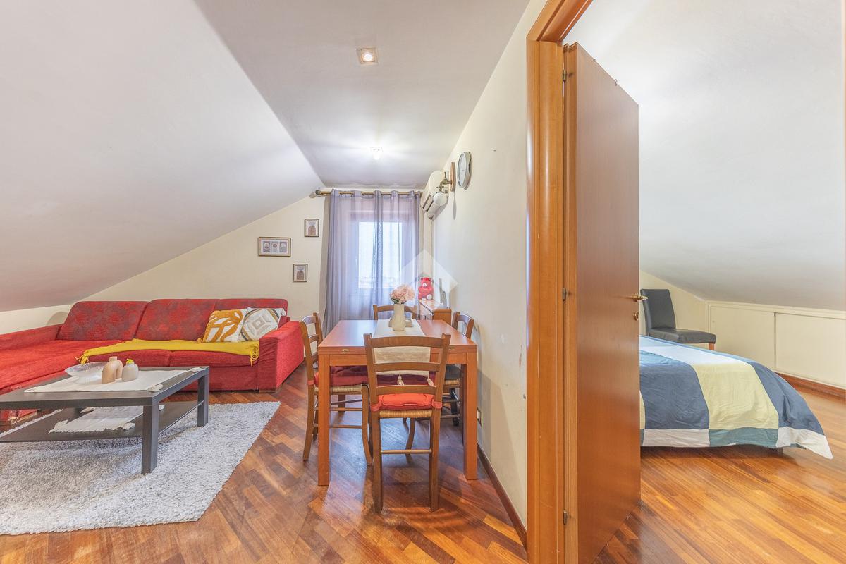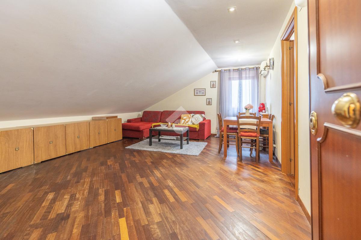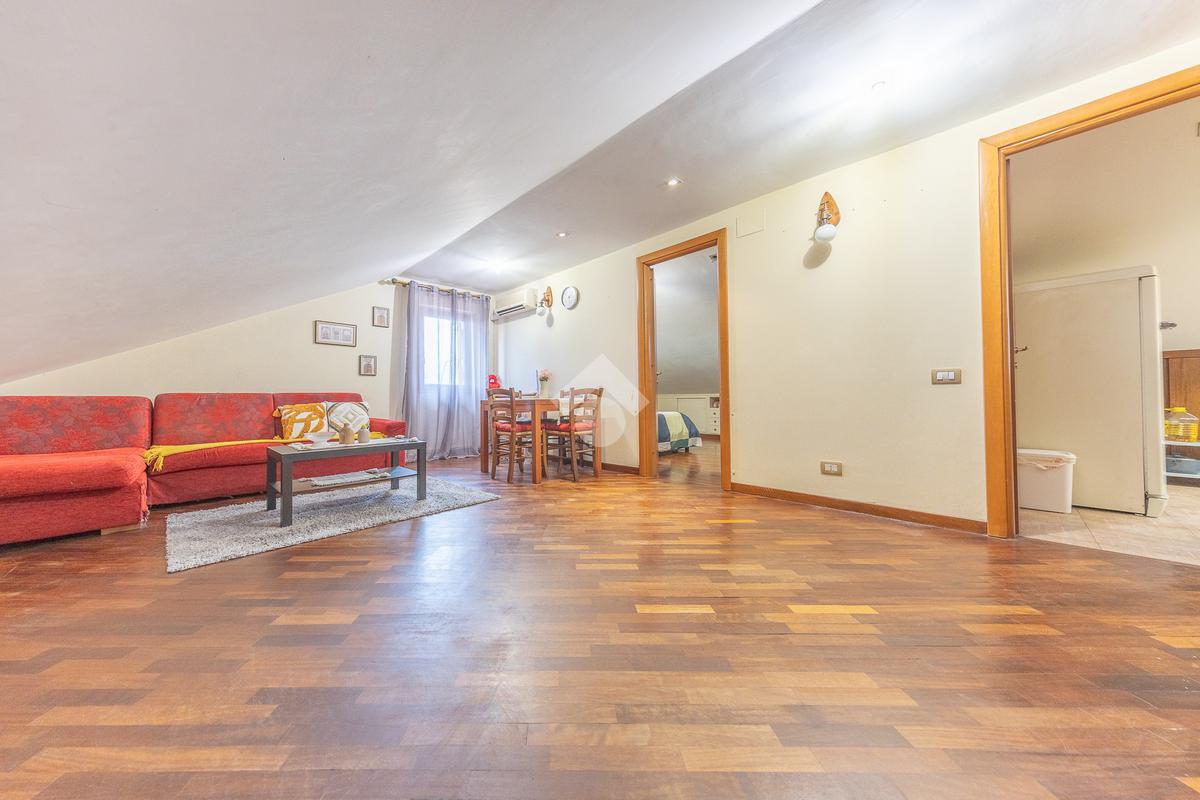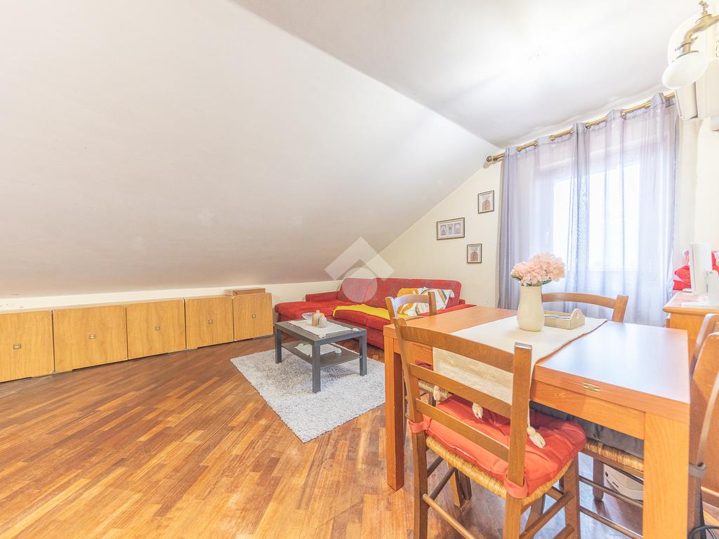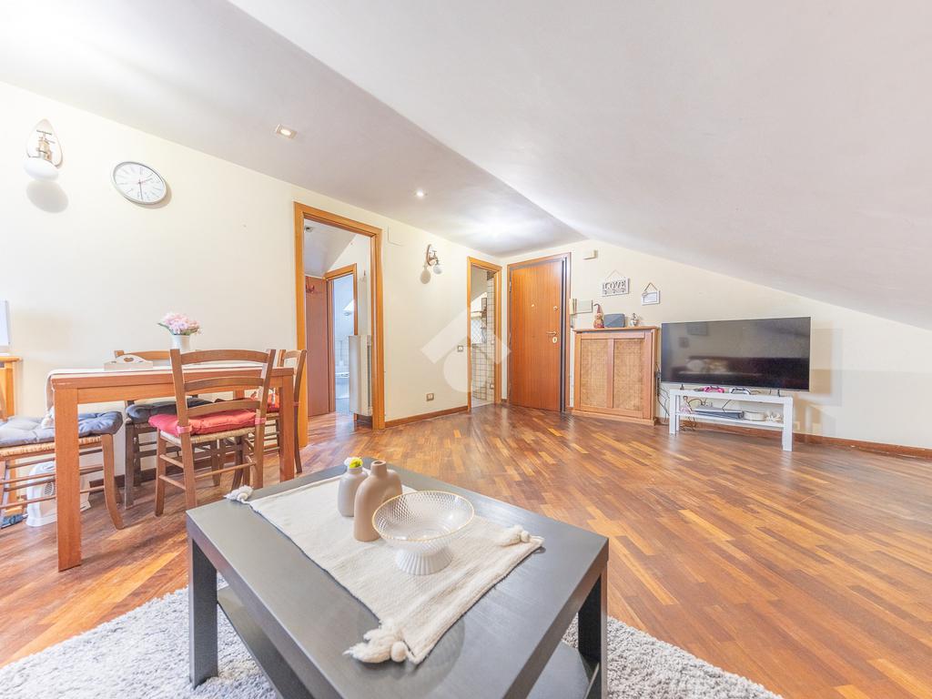 L’immobile si distingue per ambienti luminosi e ben distribuiti, caratterizzati dal fascino tipico delle mansarde, con spazi accoglienti e un’atmosfera calda e riservata. L’ingresso conduce alla zona giorno, dove troviamo un soggiorno funzionale e armonioso, ideale per momenti di relax o convivialità, con cucina ben organizzata e perfettamente integrata all’ambiente.