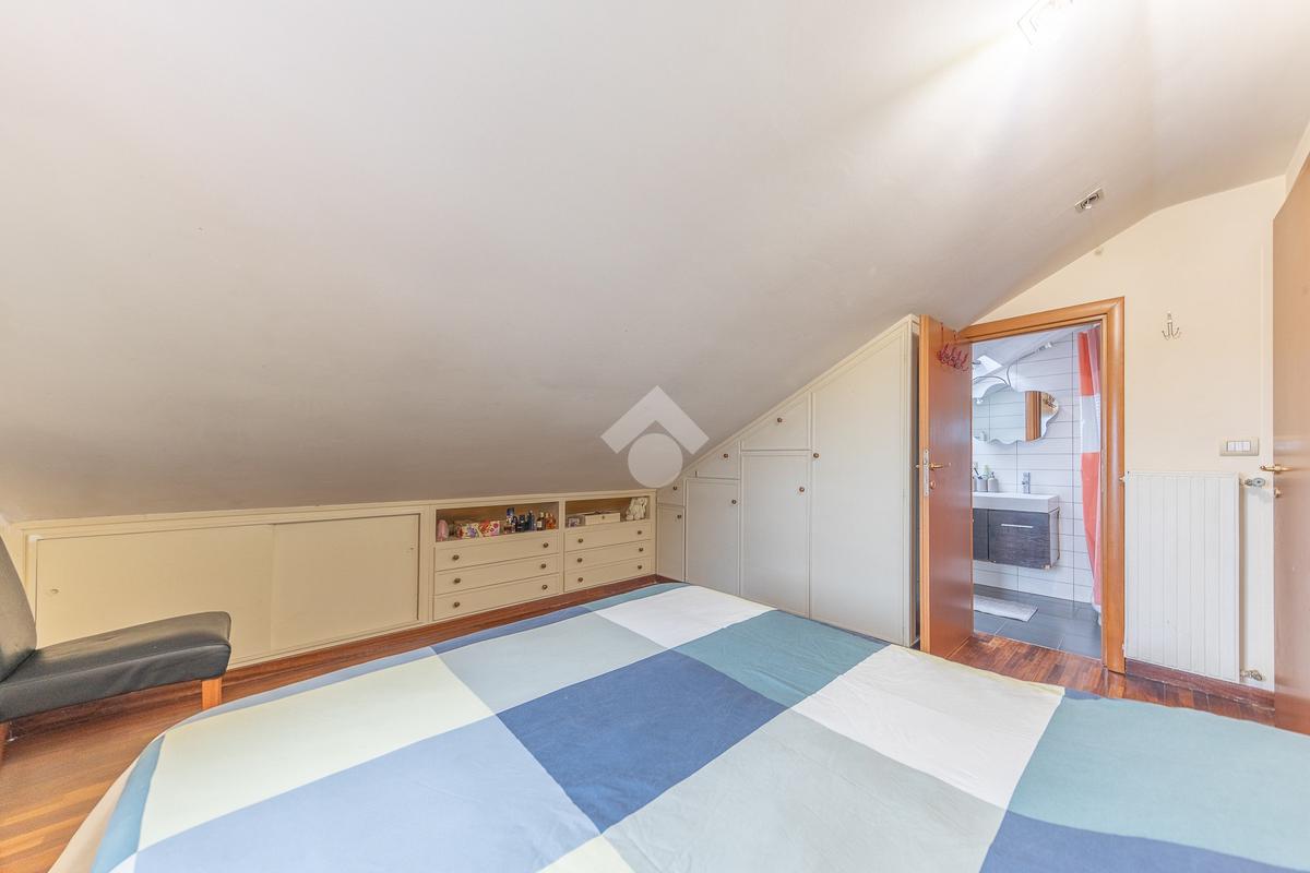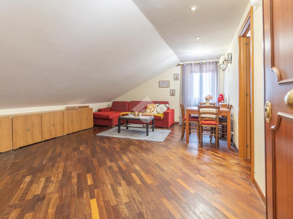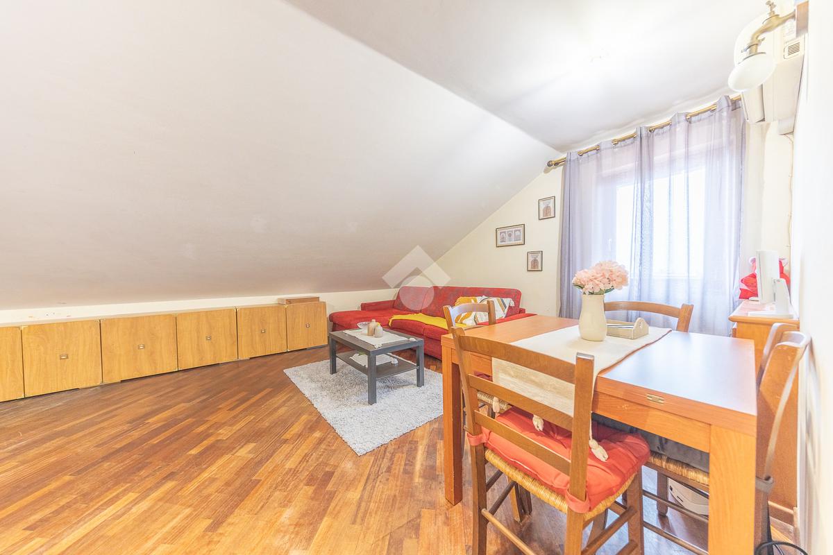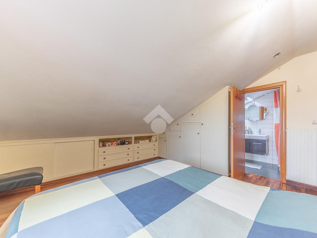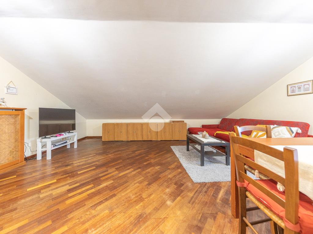 L’immobile si distingue per ambienti luminosi e ben distribuiti, caratterizzati dal fascino tipico delle mansarde, con spazi accoglienti e un’atmosfera calda e riservata. L’ingresso conduce alla zona giorno, dove troviamo un soggiorno funzionale e armonioso, ideale per momenti di relax o convivialità, con cucina ben organizzata e perfettamente integrata all’ambiente.