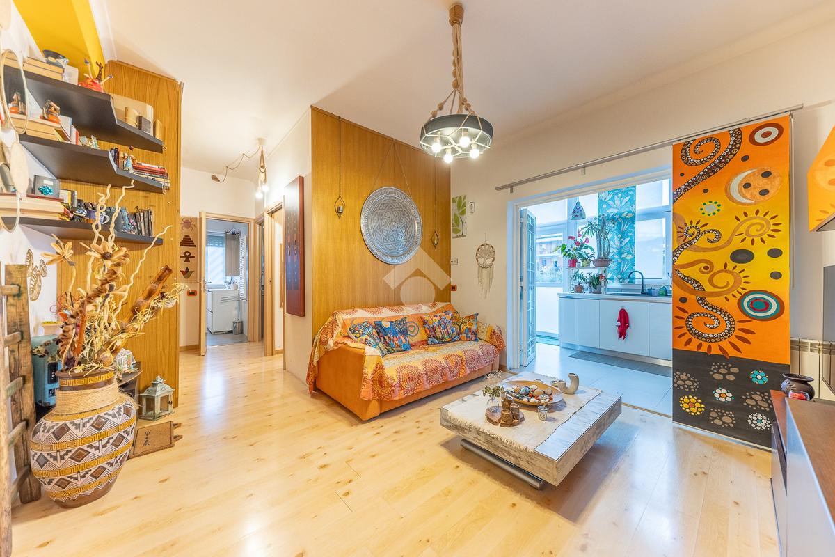 Gli ambienti interni, ben distribuiti, offrono una zona giorno luminosa e accogliente, due camere da letto funzionali e ben proporzionate, oltre a spazi pensati per garantire comfort e vivibilità. La disposizione degli ambienti rende l’appartamento ideale sia per una coppia che per una famiglia, adattandosi con facilità a diverse esigenze abitative.