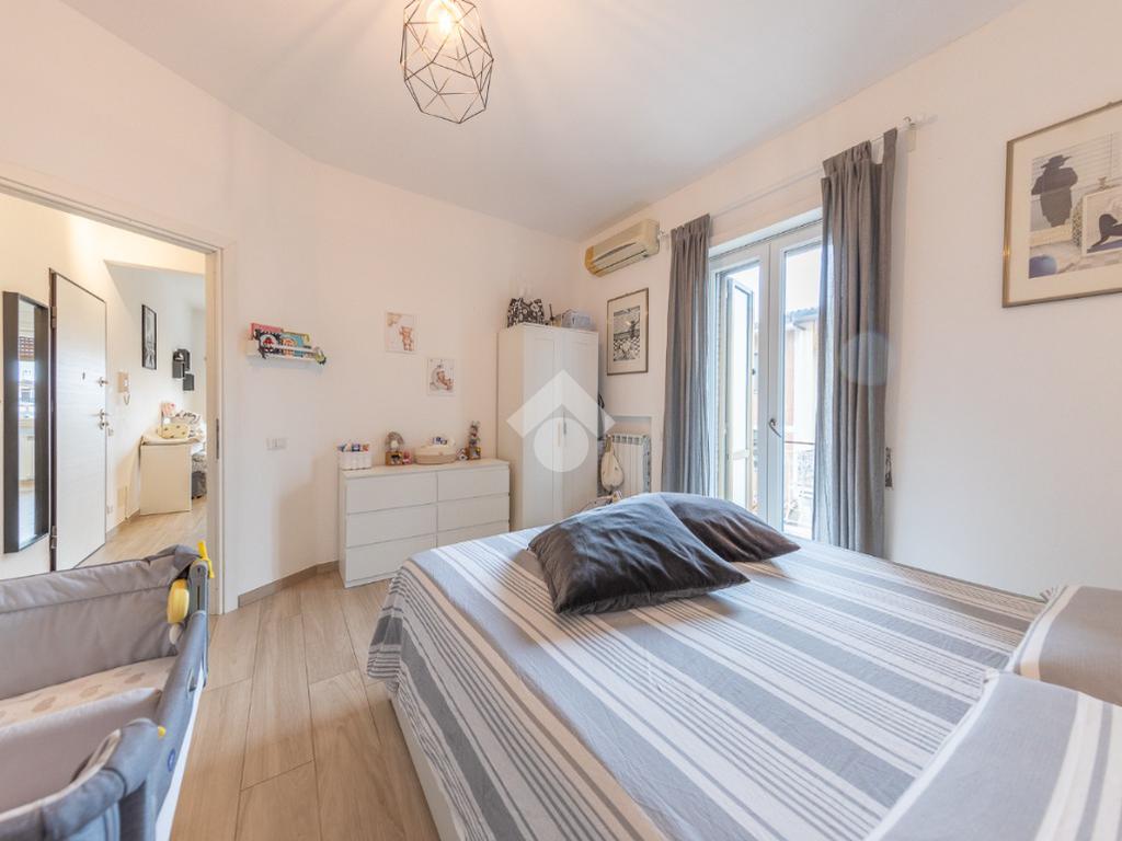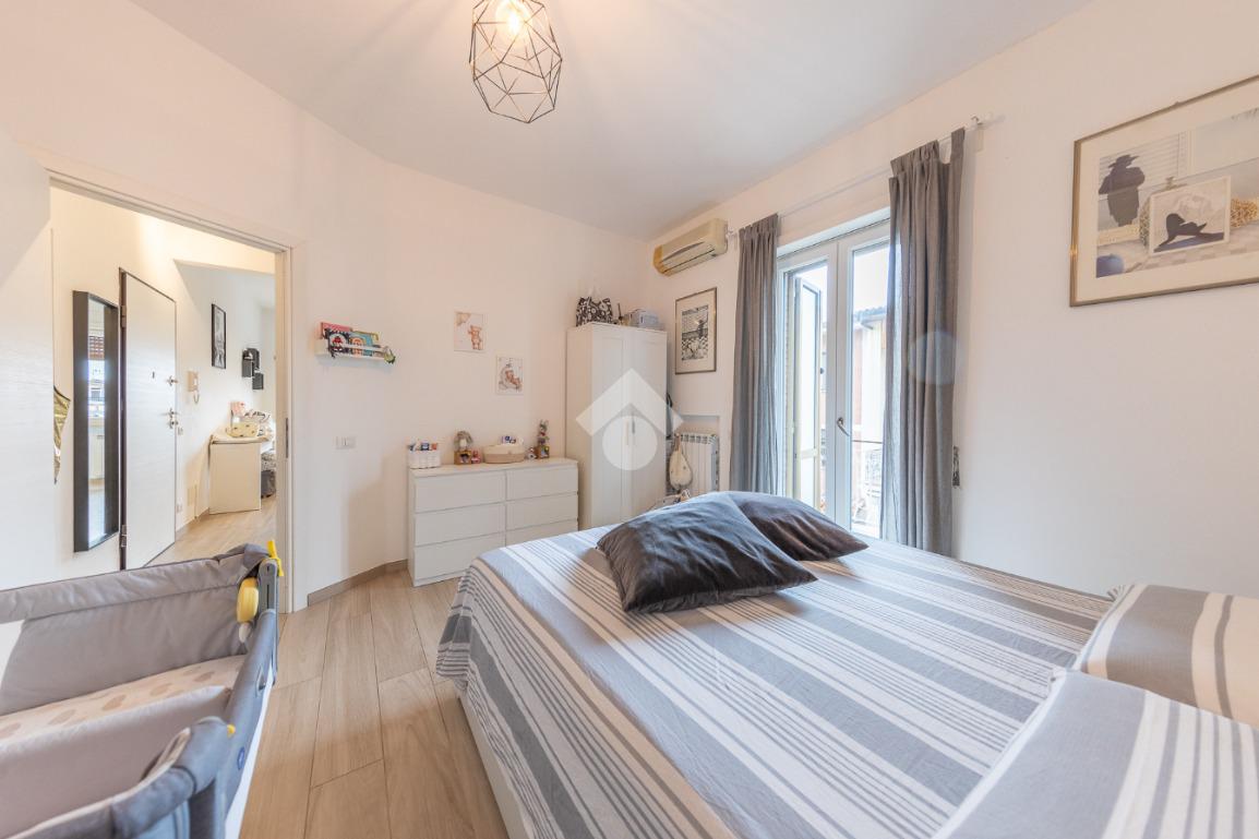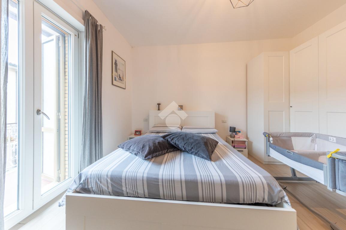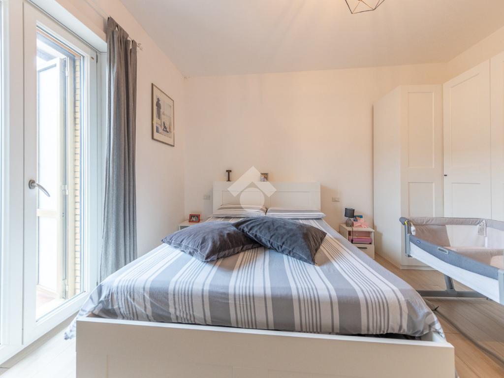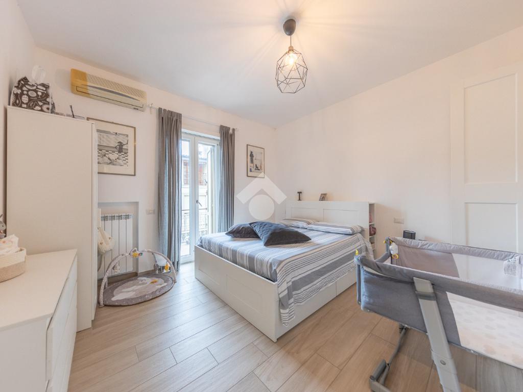 La camera matrimoniale, ampia e ben proporzionata, anch’essa con accesso diretto al balcone, offre un ambiente intimo e rilassante, pensato per garantire il massimo comfort. Completa la proprietà un bagno finestrato, curato nei dettagli e rifinito con gusto.