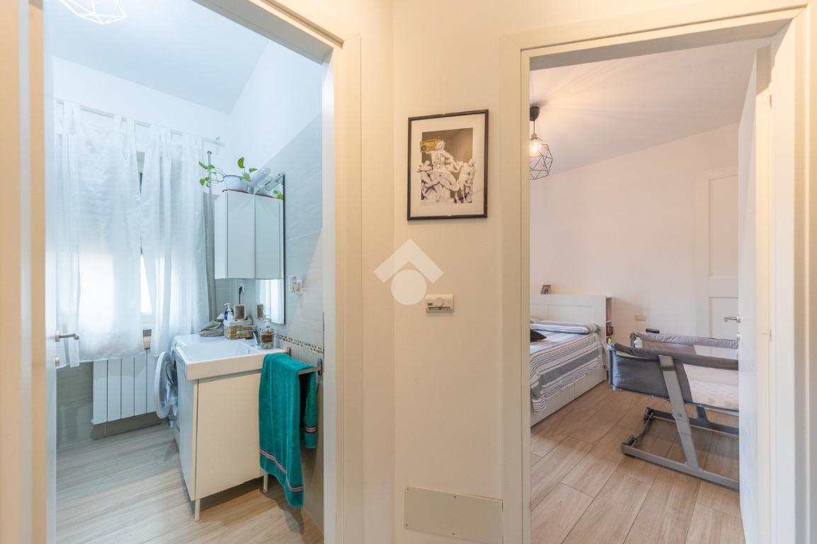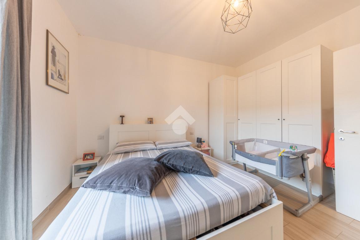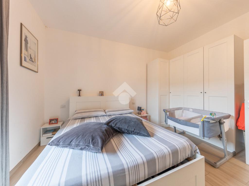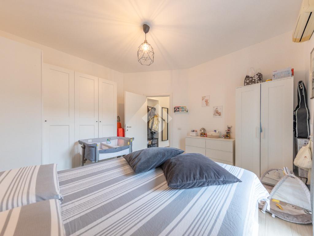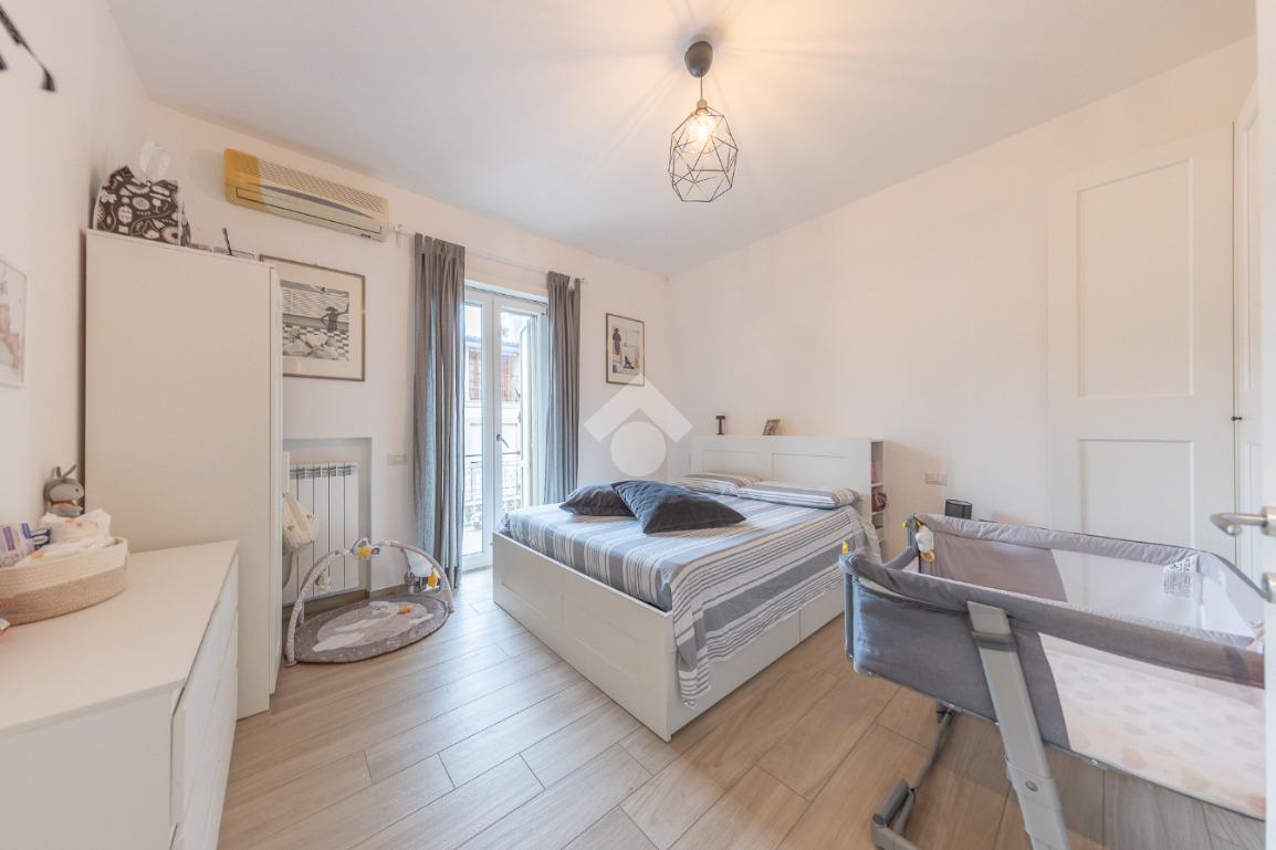 La camera matrimoniale, ampia e ben proporzionata, anch’essa con accesso diretto al balcone, offre un ambiente intimo e rilassante, pensato per garantire il massimo comfort. Completa la proprietà un bagno finestrato, curato nei dettagli e rifinito con gusto.