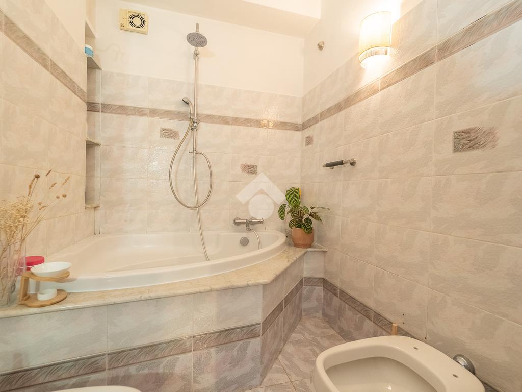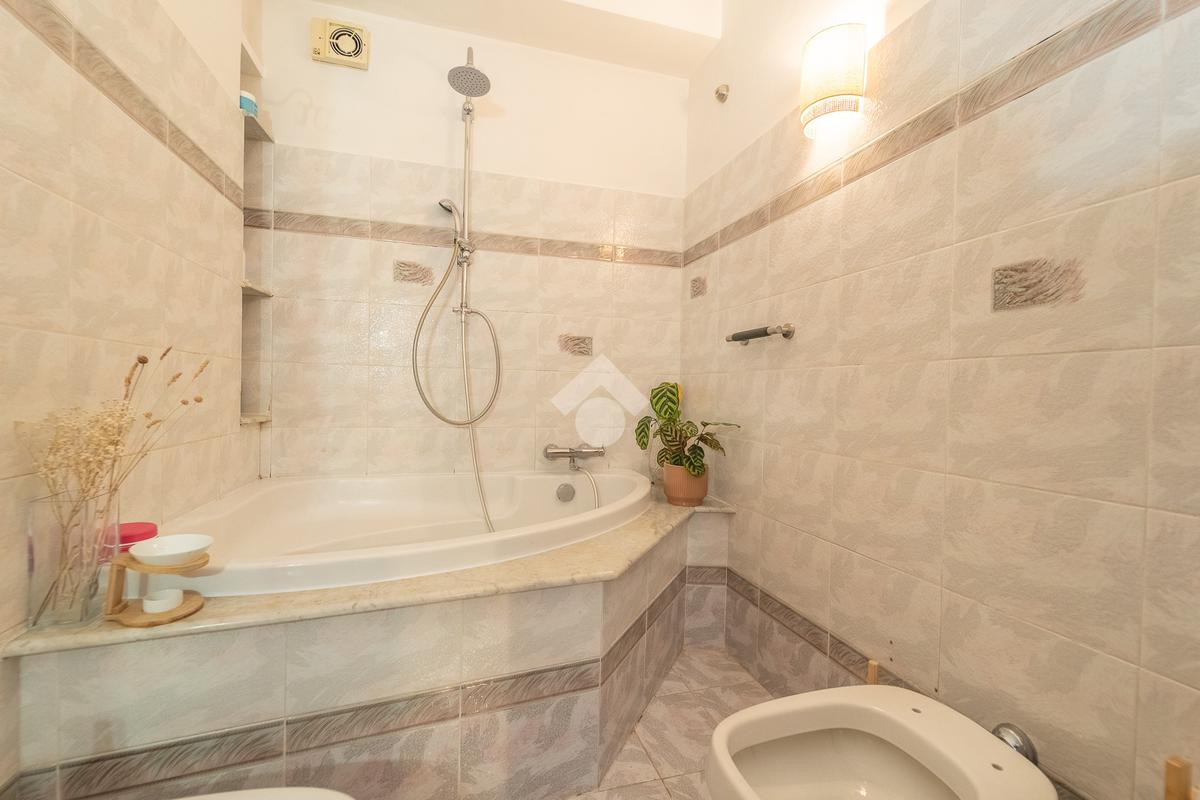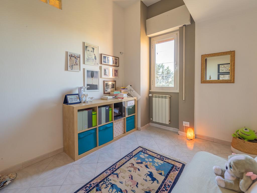 Un comodo corridoio conduce alla zona notte, dove troviamo un pratico ripostiglio, una cameretta, una camera matrimoniale con accesso a un terrazzino, ideale anche per mangiare all’aperto nei mesi più miti ed un bagnodotato di vasca.