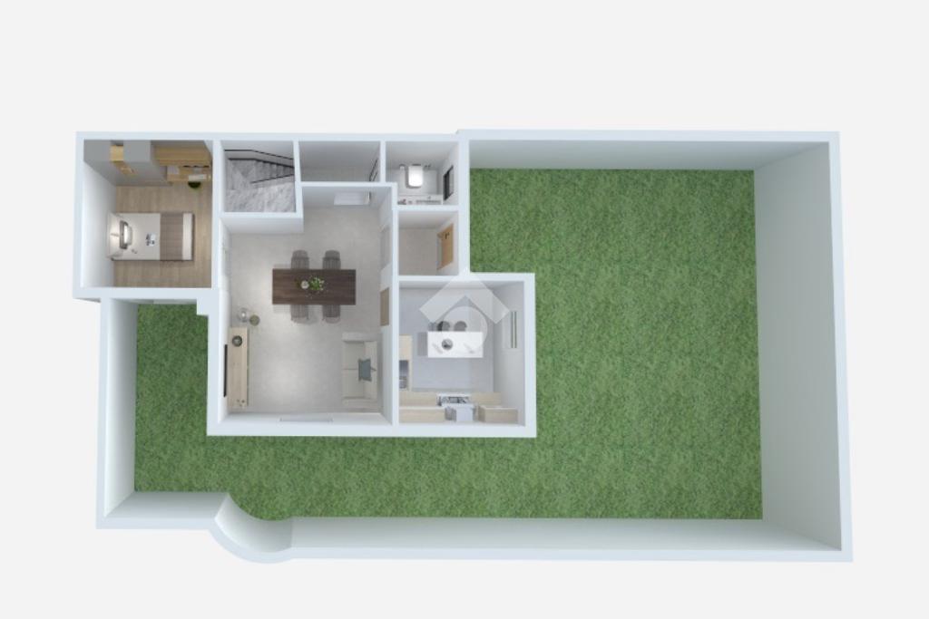 Al piano terra troviamo un luminoso soggiorno con cucina abitabile, ben collegati tra loro e perfettamente organizzati per la quotidianità; completano il livello un bagno e una comoda camera da letto.