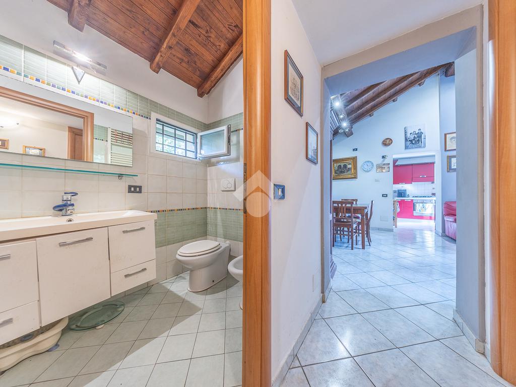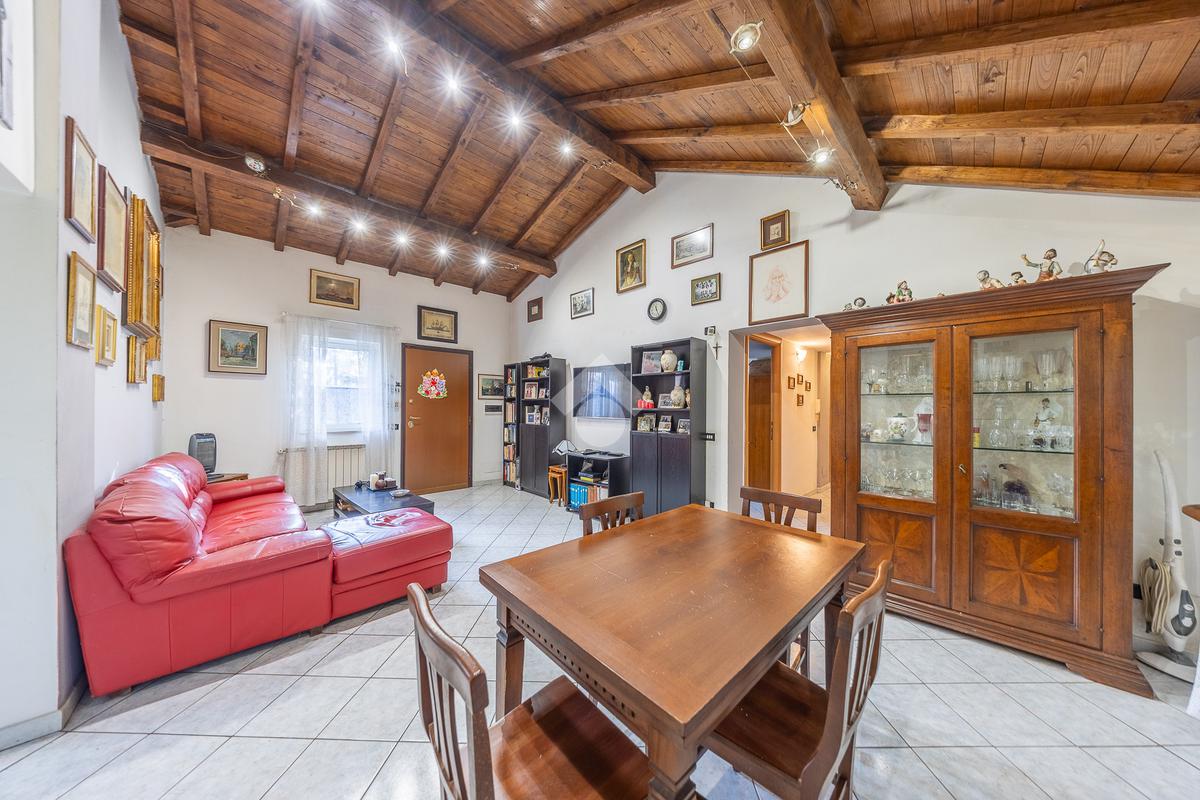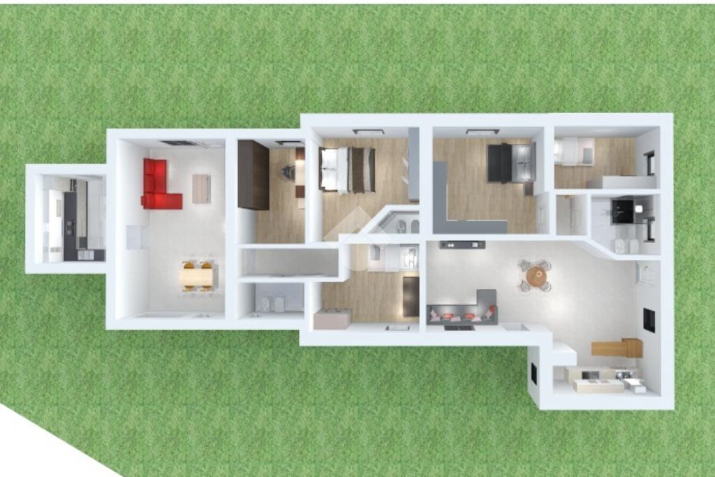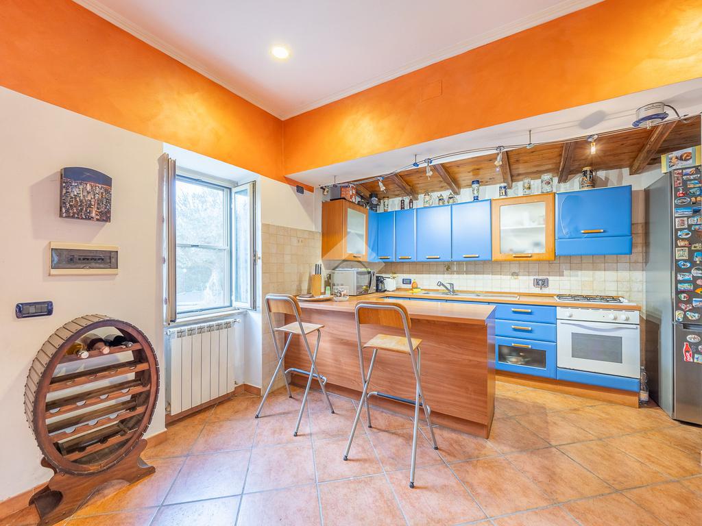 La seconda unità ha un’impronta più moderna e presenta un luminoso soggiorno con cucina a vista e camino, una camera matrimoniale, una cameretta e un bagno finestrato con doccia. Un appartamento perfetto per ospiti, per un secondo nucleo familiare o come soluzione indipendente da locare.