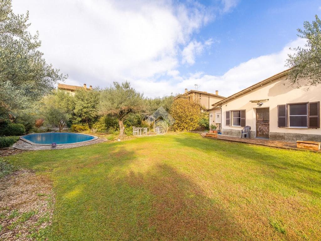La villa è circondata da un giardino perimetrale di ampia metratura, curato e ricco di fascino, con ulivi, piante ornamentali e colorate fioriture che garantiscono privacy, relax e un’atmosfera naturale unica. Completa la proprietà una splendida piscina, perfetta per godere appieno degli spazi esterni durante la bella stagione. L’area esterna, grazie alla sua ampiezza, offre inoltre la possibilità di parcheggiare più di quattro automobili in totale comodità.